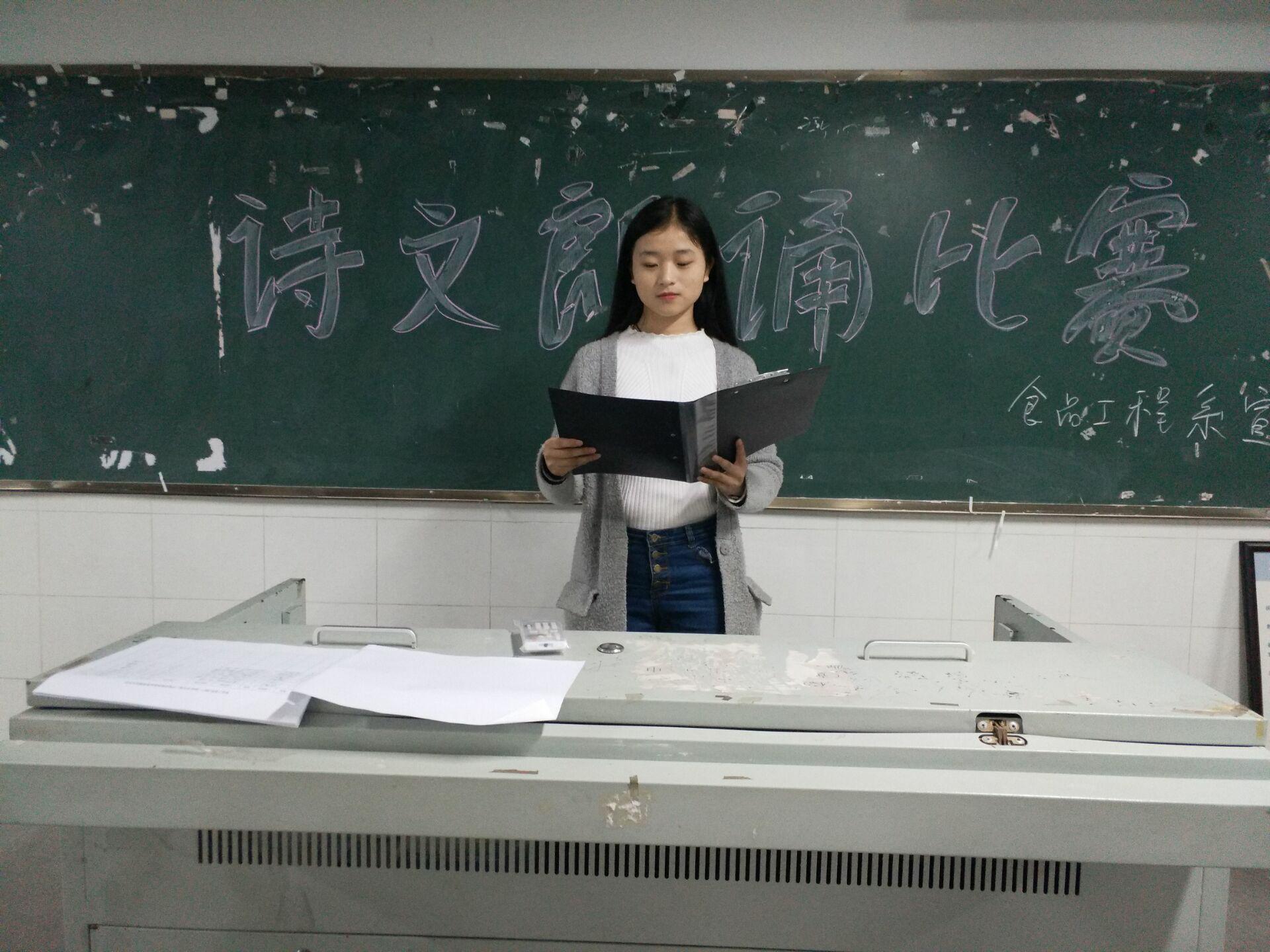 本网讯 为弘扬汉语精神,用诗歌点亮希望,用激情渲染青春,激发学生对诗歌的热爱。食品工程系宣传部语工部3月18日晚6:30在E506举办诗文朗诵大赛,学生会各部门代表出席担任评委。