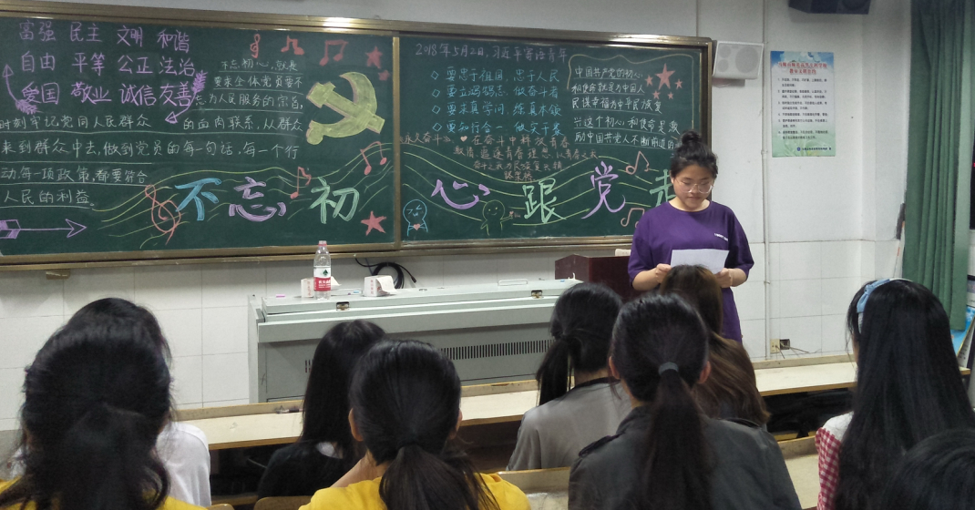活动开展前,各班都准备了以“青春喜迎十九大,不忘初心跟党走”为主题的黑板报,通过黑板报向同学们介绍了什么是十九大,以及十九大的意义,且号召同学们要向党中央看齐,认真学习感悟十九大精神。随后,团员们围绕主题,展开了热烈的讨论,结合自身成长发展经历,畅谈学习收获和体会。各班青年团员们纷纷表示,要提高自身的政治素养,认真学习党的十九大精神,不断掌握新知识,积累新经验,增强新本领,以饱满的学习热情、积极的学习态度投入到学习生活当中。在整个活动中,同学们积极踊跃发言,氛围十分活跃。