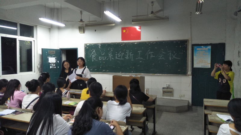 本网讯 9月6日晚自习结束,食品工程系召开了2018年食品工程系迎新工作准备会议。会议由食品工程系学生会主席团的张雪婷主持,学生会全体成员和各班班委、积极分子参加了会议。