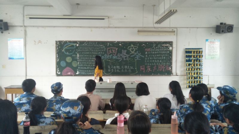 班会伊始,各班以不同于以往的方式向同学们介绍相关内容。无论是黑板报,还是在班会过程中播放的宣传视频,都更好的将网络安全知识深入同学心中。大一新生刚步入校园,尚未形成安全防范意识,在此之际进行这样主题的班会,是给同学们上了重要的一课,将一切防患于未然。关注网络安全,构建人文和谐。在班会的尾声,各班班长都对同学们提出了自己的想法和建议,同学们认真聆听,活动氛围浓厚,借此机会,将大家紧紧团结在一起,共同关注网络安全。