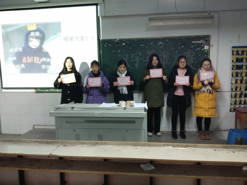 本次比赛公分为三个环节:第一环节汉字大“变身”(由繁体字写出相应的简体字);第二环节汉字对对碰(给字注音或者由拼音写汉字;第三环节的心心相印是以班级为单位,考验选手们的团队合作意识,赛场上,选手们表现出极大的激情。他们思考问题时聚精会神,细致思考,揣摩着释义所提供的每一个信息,安静的空气里,仿佛听到了大脑高速思考发出的嘀嘀声;团队赛时,大家更是齐心协力,互帮互助。比赛氛围紧张又刺激。同学们为每一次成功而喜悦,也为每一次出错离场而黯然神伤神,选手们自备纸笔,认真听写。经过激烈的比拼,我系高福格格荣获比赛第一名,赵维、王依婷同学获得了第二名,吴雨婷、孙秀茹与王明月三位同学获得了第三名。同时,食品营养与卫生2班、食品检测技术1班、食品检测技术2班、与食品加工技术班四个班级在此次比赛中表现优异,荣获优秀奖。