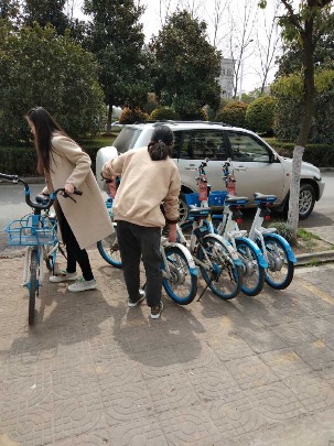 中午12点30分,同学们带好了纸巾与抹布,准时在学校的三号门集合,对三号门周边的共享单车开始了清洁活动。只见马路旁的共享单车,有的上面积着厚厚的灰尘,有的被人随意地摆放着,一片凌乱狼藉。同学们见此立刻展开了活动,先是将倒在地上的共享单车扶起来,检查车的座椅与把手有无损坏,再拿出早已准备好的清洁用品仔细地对共享单车进行了擦洗,大到扶手篮筐,小到脚踏车链,无一例外地都受到了同学们的关注,虽然有些污垢很难擦洗掉,但同学们毫不气馁,尝试着使用各种办法。最后,同学们将擦洗过的焕然一新的共享单车井然有序地排成一排,放在规定的区域内,等待着有需要的人来使用。