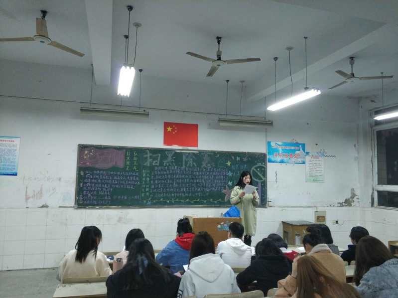 此次团日活动的主题为“青春心向党,练功新时代”,全体食品工程系同学参加。为了准备此次的活动,各个班级都制作了与团日活动主题相关的黑板报,活动以班级为单位,由各个班的团支书上台主持。