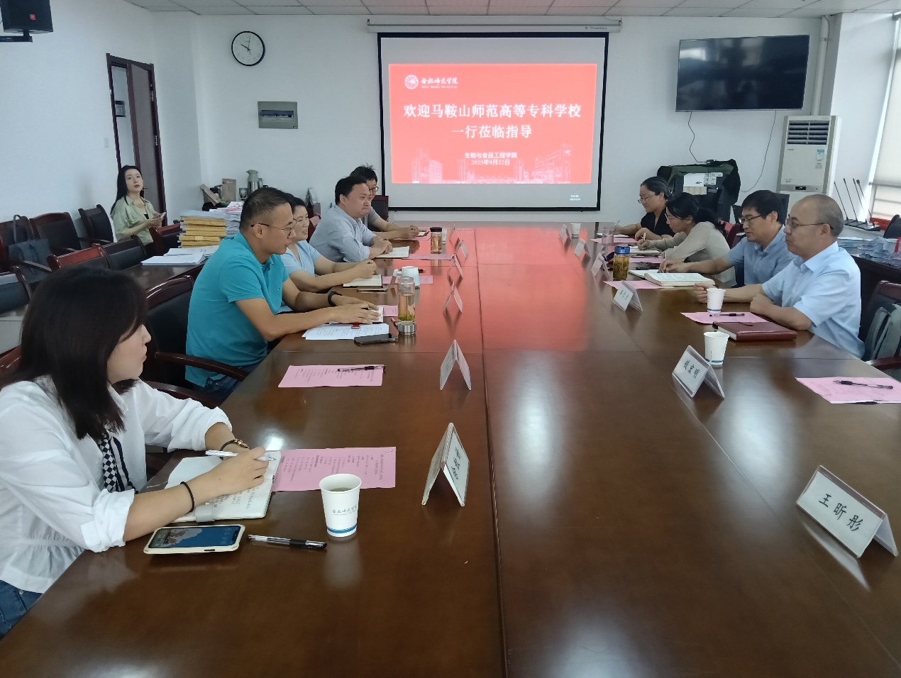 为进一步完善专升本学生联合培养工作,提升人才培养质量,9月22日,我院党总支书记张世安、院长秦东方、副院长夏灿及有关教师一行6人,赴合肥师范学院生物与食品工程学院开展专题考察交流活动。合肥师范学院生物与食品工程学院院长朱桂兰、党委副书记李万成、副院长陈金武等领导、教师参加交流。