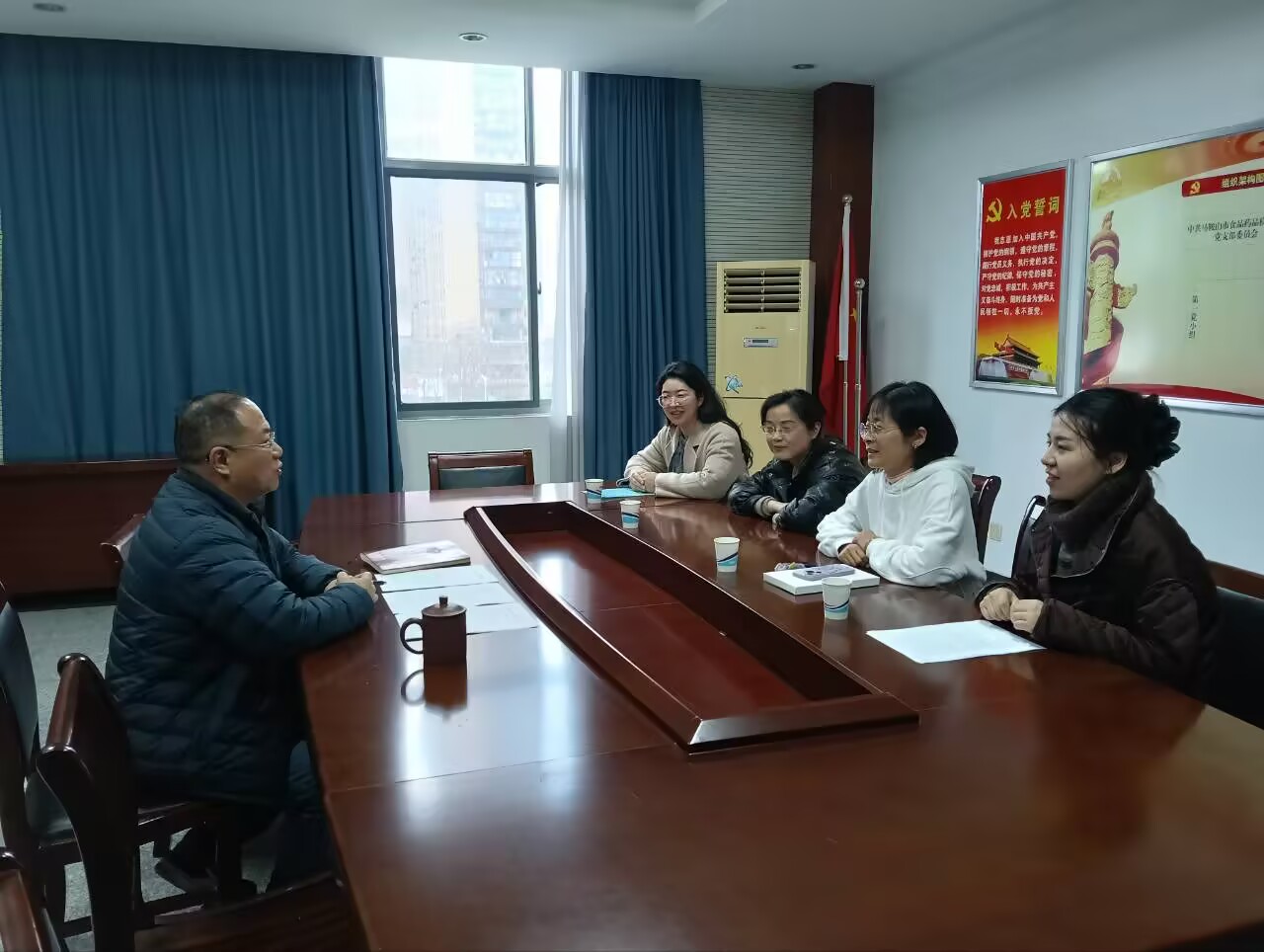 2025年12月19日,食品工程学院骨干教师陈静颖、刘红梅、王滢、赵丹丹一行,前往市产品质量监督检验所、市食品药品检验和药品不良反应监测中心,开展访企拓岗暨专业调研活动。市食品药品检验和药品不良反应监测中心主任朱兴江等领导接待调研组一行,并参加座谈。